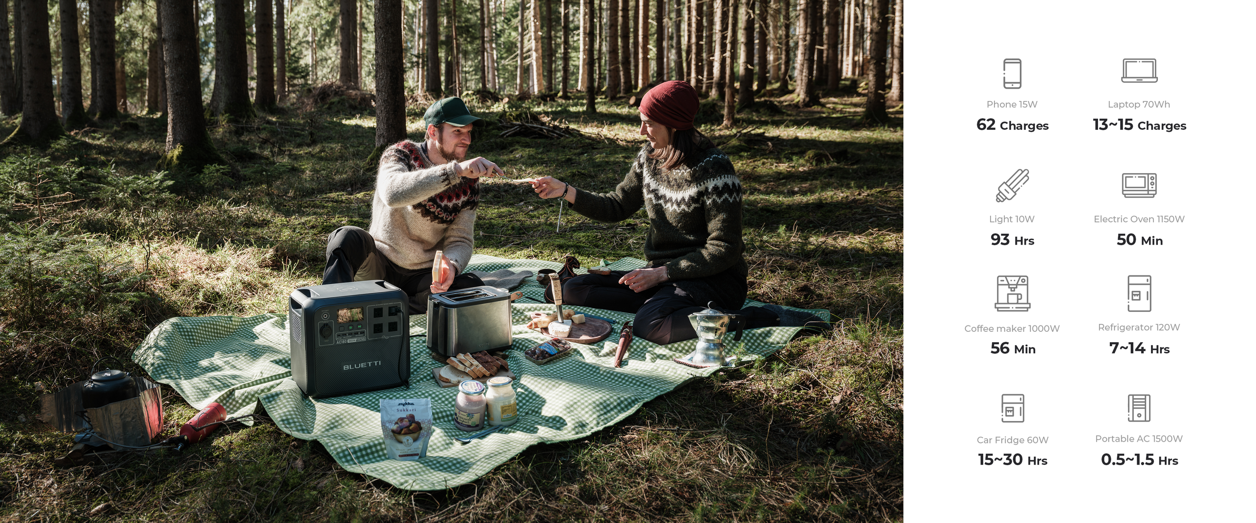 Worry about running out of juice on your way to the next destination? Get your AC180 charged via expansion batteries - B80 (806Wh), B230 (2048Wh), and B300 (3072Wh) - to ensure a continuous power source of up to 4,224Wh, which is sufficient to last your outdoor fun even longer.