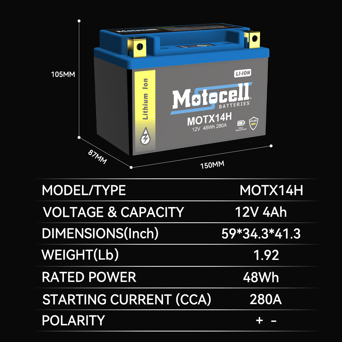 MOTX14H 12.8V 4Ah LiFePO₄ Battery G1204