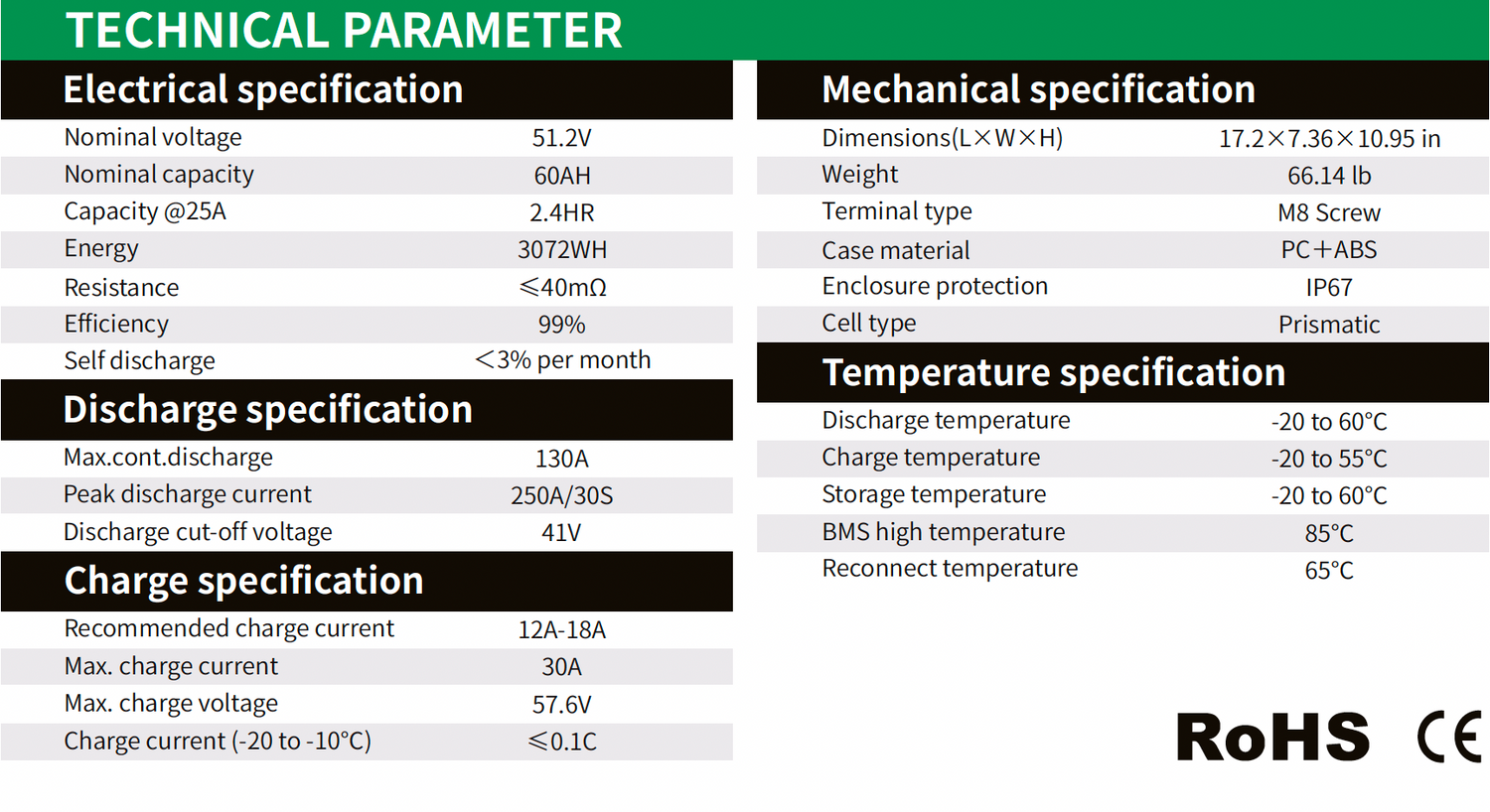 51.2V 60Ah LiFePO4 Battery G48307